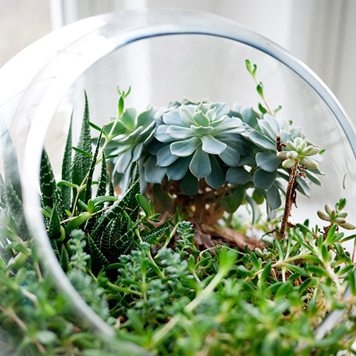 Arrange them in a low, wide container alongside your herbs — the contrast of soft foliage + edible herbs is charming. Not only does it look good, but it also brings a bit of the outdoors in and ties your living space to your floral décor.